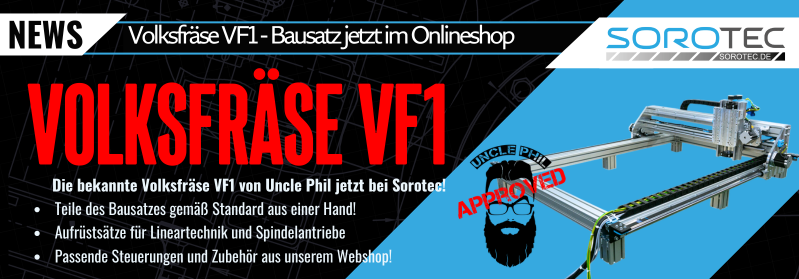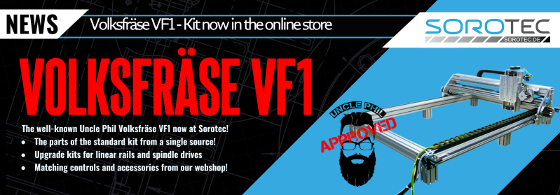 Ab sofort: Volksfräse inkl. Aufrüstsätze im Shop erhältlich Anfertigung individueller T-Nutenplatten auf Anfrage möglich |