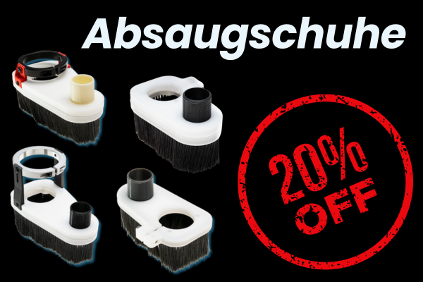Ob Holz, Kunststoff oder Alu: Unsere Absaugschuhe sorgen für klare Sicht, saubere Kanten und weniger Sauerei in der Werkstatt. Nur im Dezember sicherst du dir 20 % Preisvorteil auf ausgewählte Modelle im Sorotec-Shop. |