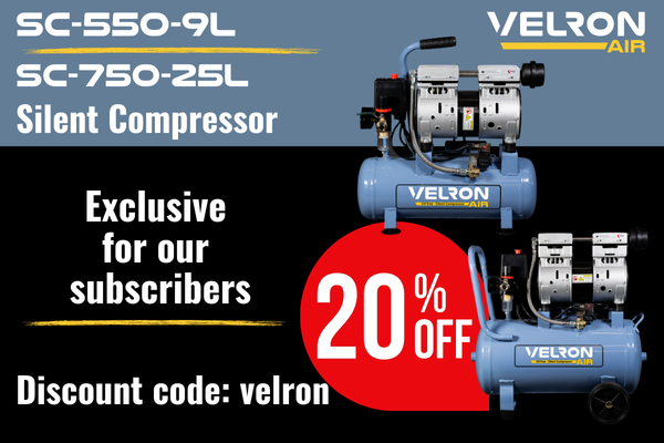 Als Dankeschön für dein Vertrauen gibt’s 20 % Rabatt auf unsere beliebten Velron Flüsterkompressoren: