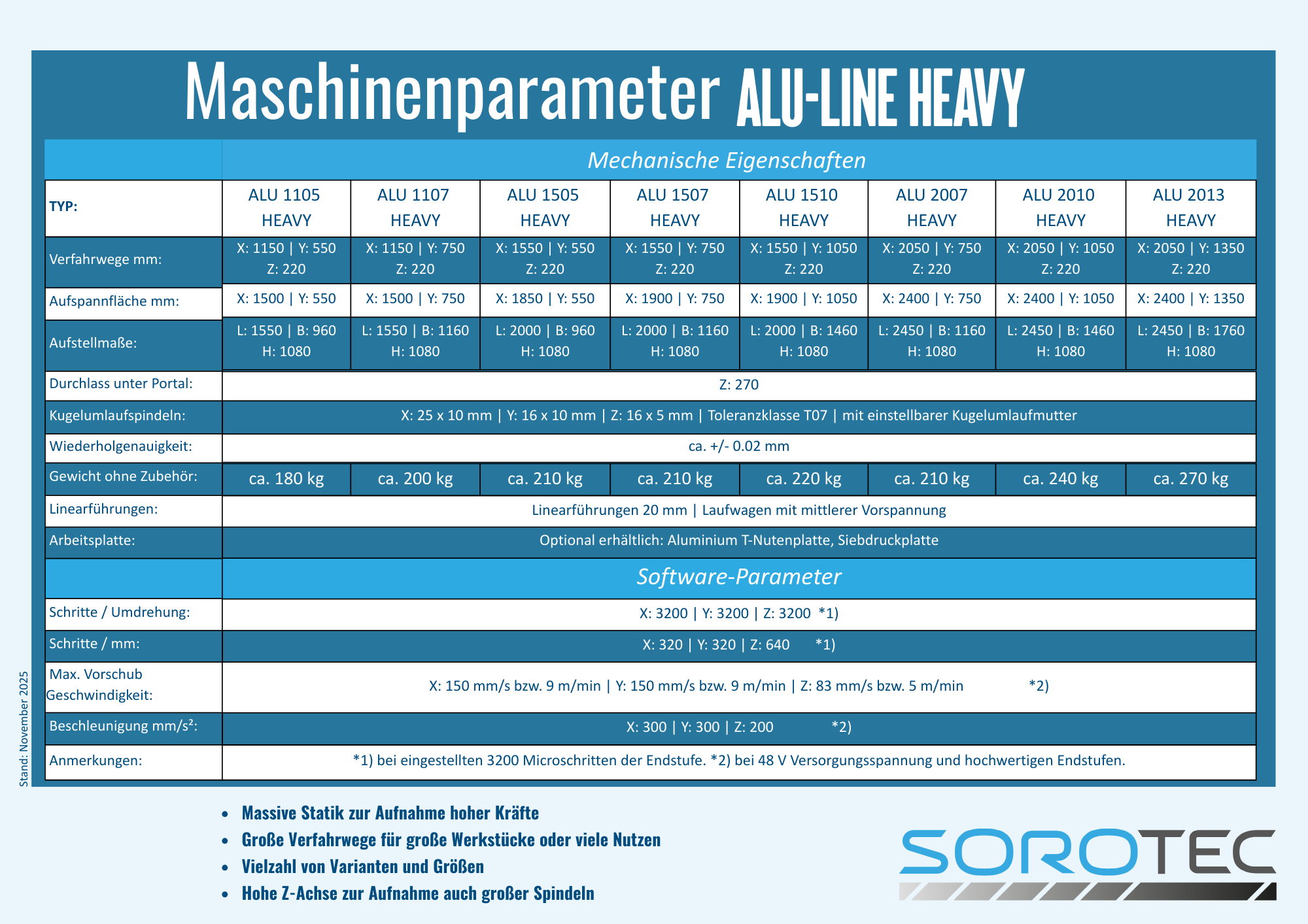 Die ALU-Line Heavy (Gantry) ist erhältlich mit Verfahrwegen von: